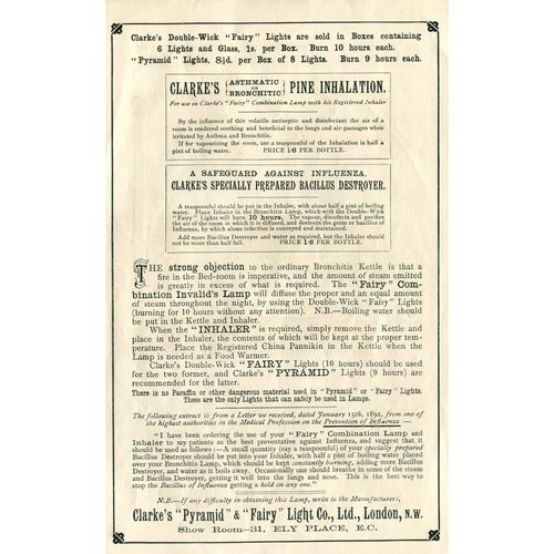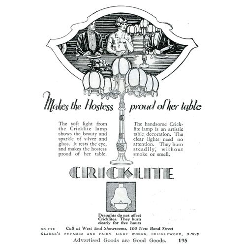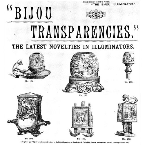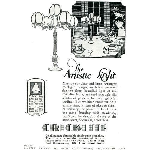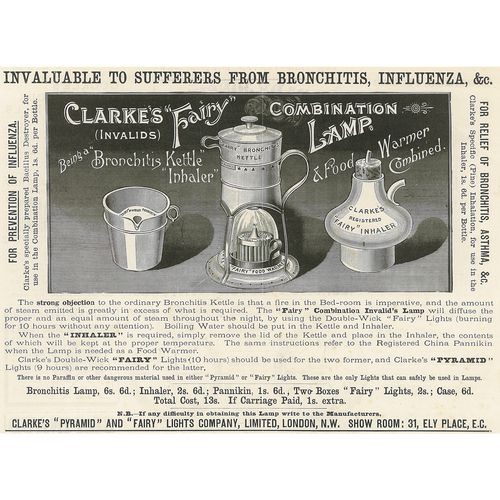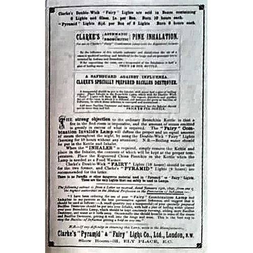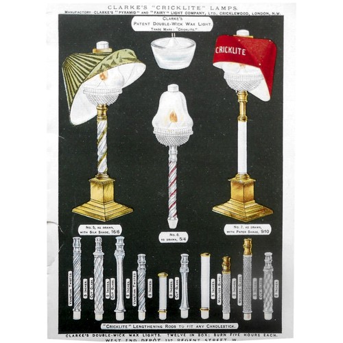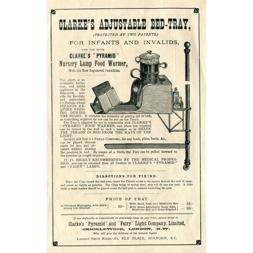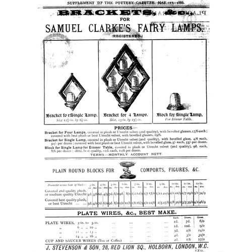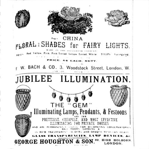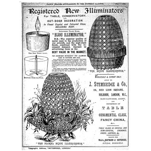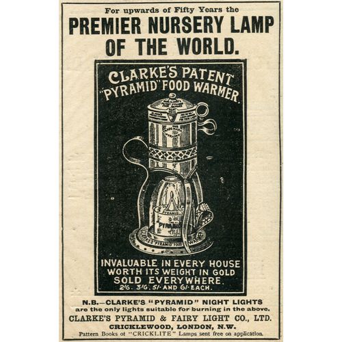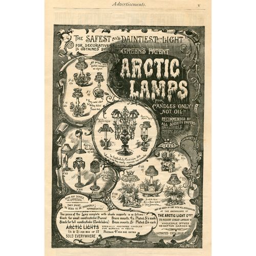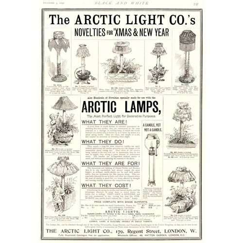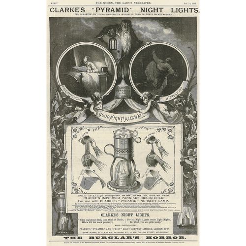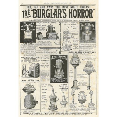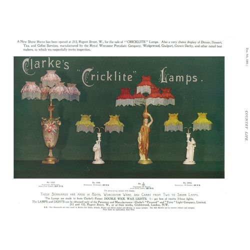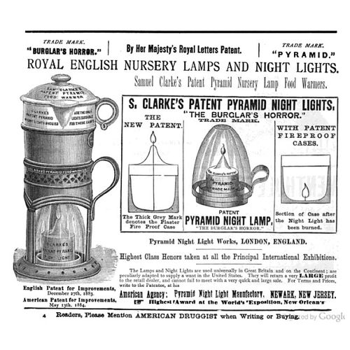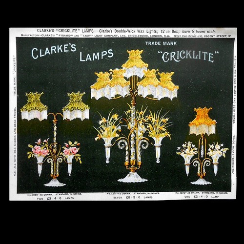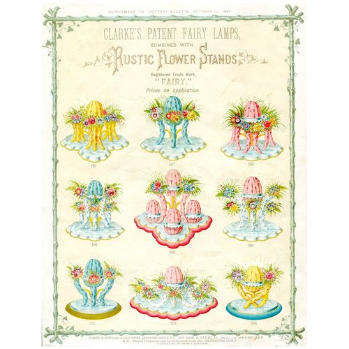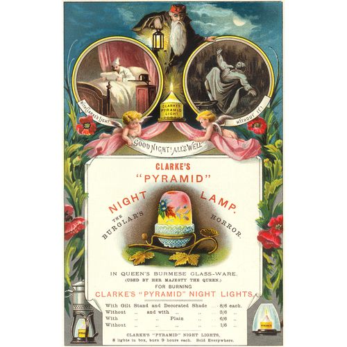 Catalogs, design books, and advertisements during the Victorian-era are an invaluable source of information. Samuel Clarke was a prolific advertiser for his fairy lamp and fairy lights. His ads appeared in nearly all the major publications of the time and many were in full color. The advertisements were often full page and the illustrations were very precise and detailed leaving nothing to the imagination
