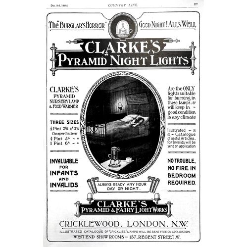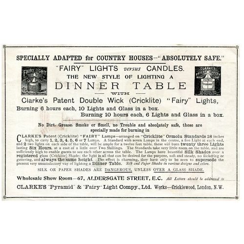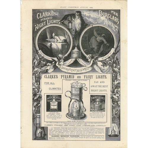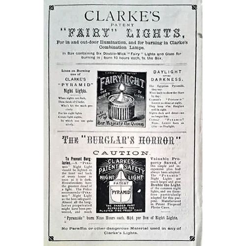 Oil Lamps, Christmas Lights and Clarke Plaques and Blocks Advertisements