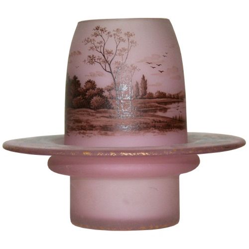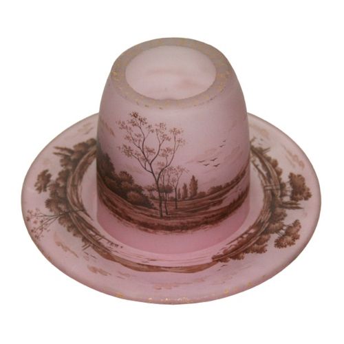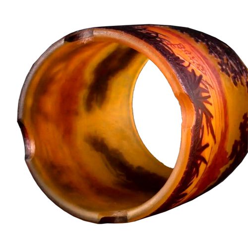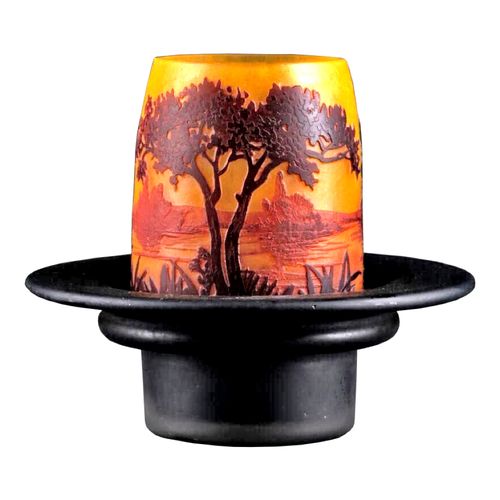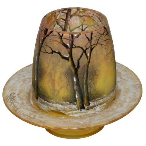 NIGHT LIGHT decorated with a lake landscape at dusk Multi-layered acid-etched and brown glass on an orange background Cameo signature H. 7.5 cm Added glass base