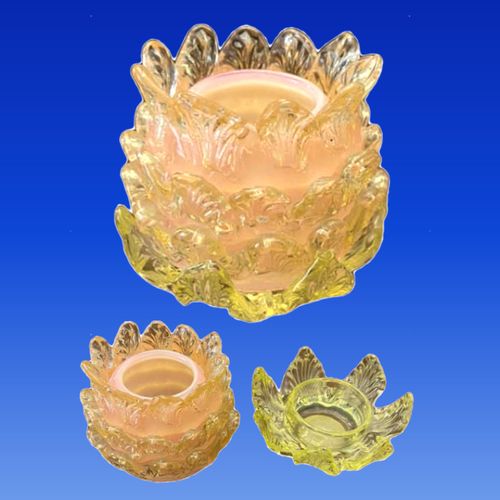 This collection of floral candle lamps and posey holders has been attributed to three companies; Loetz, Harrach, and John Walsh Walsh. Please contact me if you have additional examples, or documentation that helps to positively link these products to any of these companies. For now, this webpage is under development and is designed to collect and share information.