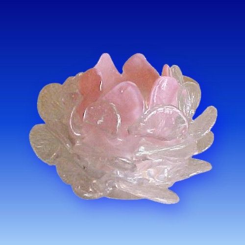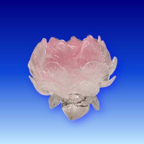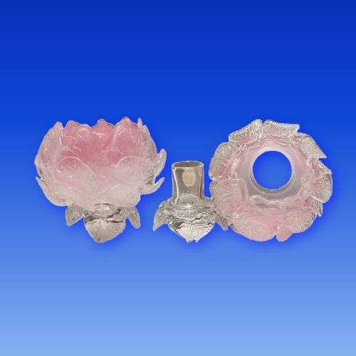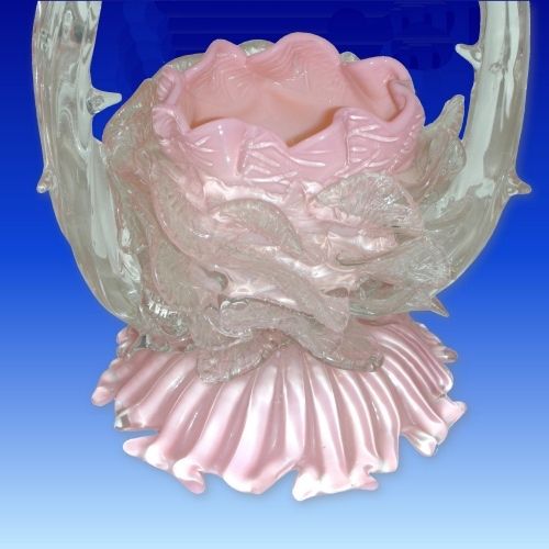 Floral candle lamp with an opalescent pink, cased in clear glass, with three rows of applied clear tooled glass petals.