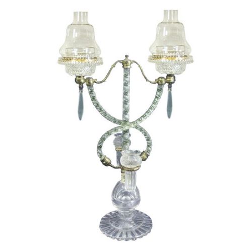 Unknown design included due to "richly cut" glass and use of Clarke model 82 "richly cut" fairy lamp with pegged lamp cup