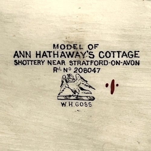 His son Adolphus joined the firm in the early 1880’s and added many different models, including the "cottages." In 1893 the first cottage in colored Parian ware was produced. The first three cottages were Hathaway, Burns and Shakespeare. Goss produced 37 more cottages over the next 50 years. They proved to be so popular that the first three were continually produced until the Goss factory closed. Models made between 1905 - 1914 usually carry a registration number, although a few carry them from 1884, i.e. Rd 208047 (1893) being the Hathaway cottage. The registration number was determined when the first model of that cottage was made and continued thereafter.
