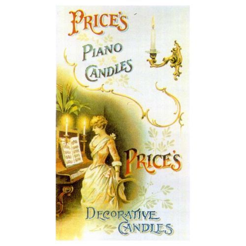 Following are few examples of Price's products, some old, some contemporary, along with some products marketed specifically for use with Prices candles. In addition, there are advertisements, trade cards and postcards that illustrate a broad range of candle products.