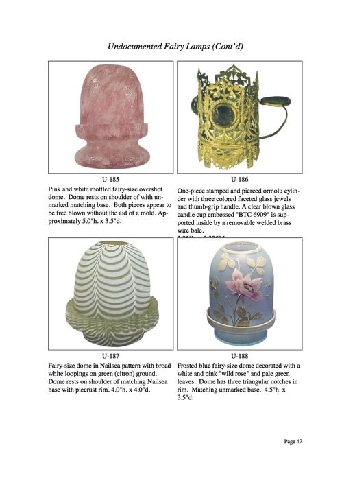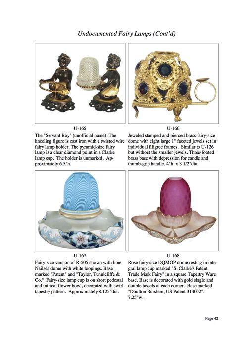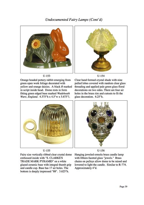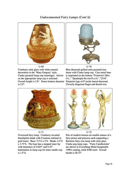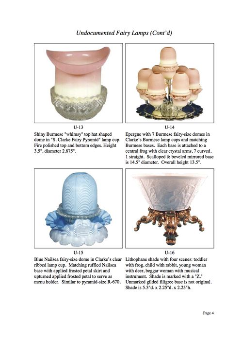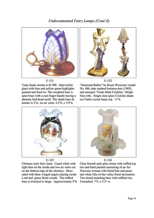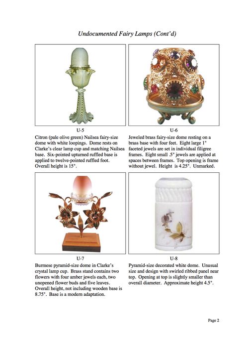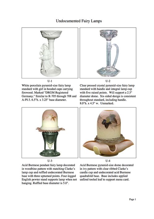 As you can see, the term "undocumented" is applied in the broadest form of definition. The overall intent - beyond laboring over the definition of "undocumented" - is to present to photographic examples of fairy lamps not readily available elsewhere. If you have examples that you would like to share with our website visitors, I would be very pleased to hear from you.