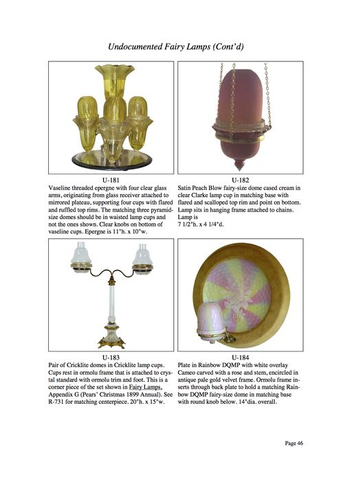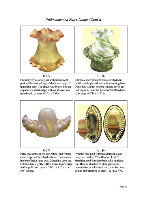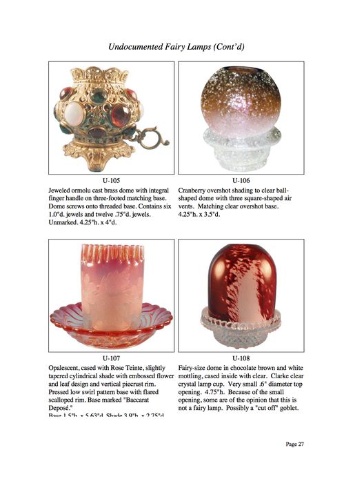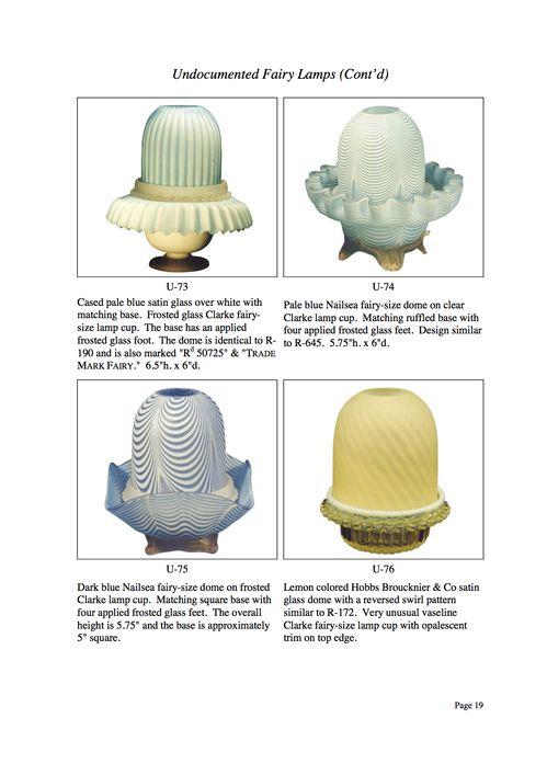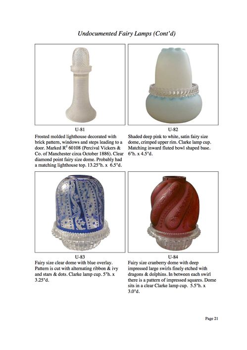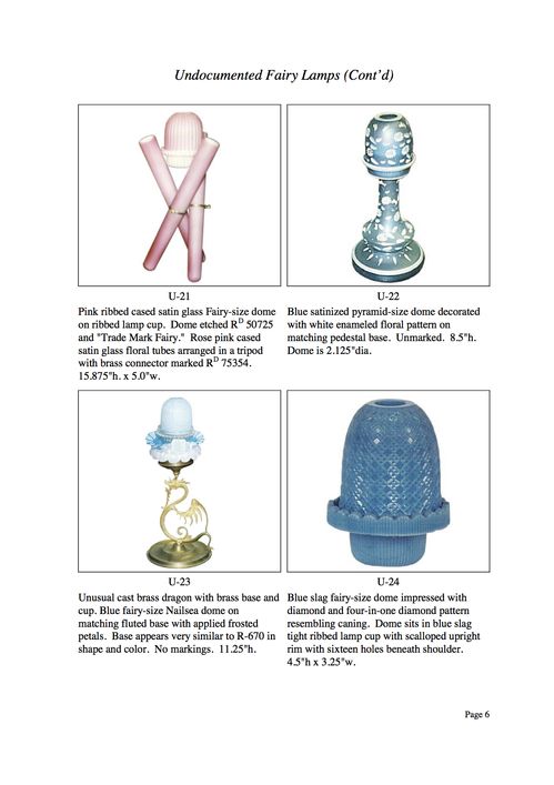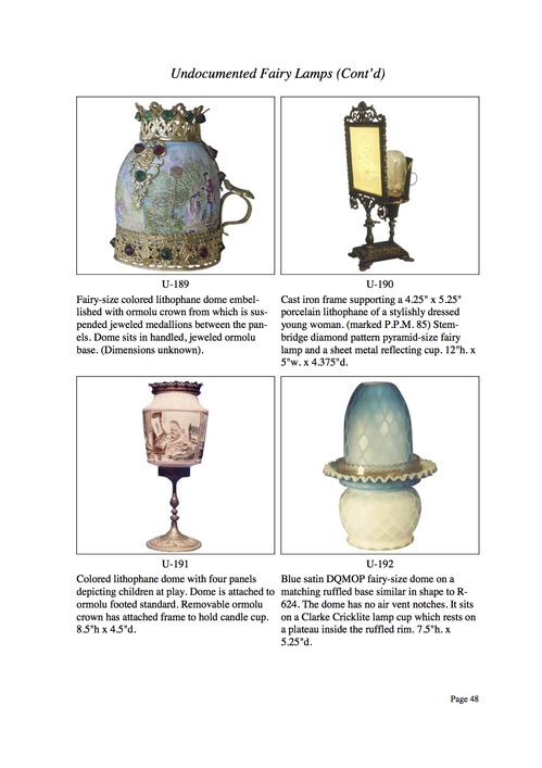 Shortly after the founding of the Fairy Lamp Club in 1996, we began a project to document previously "undocumented" fairy lamps. The term "undocumented" is not, however, strictly applied to these examples. An undocumented example may be: